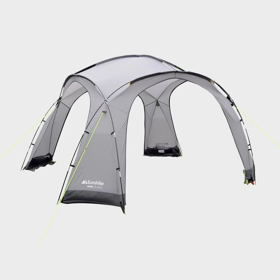 The perfect accessory for camping, the Eurohike Shelter offers extra space for cooking, eating or planning. It features 4 doors, one of each side, each with mesh windows and is erected using the ArcFlexâ„¢ fibreglass poles which combine to form a dome structure with up-to 220cm of standing room.
